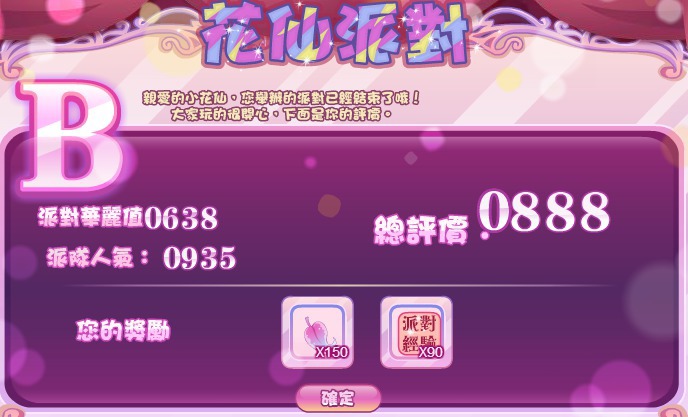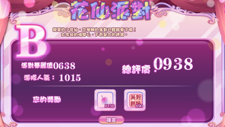 緦評價的分數是取決於派對華麗值及派對人氣