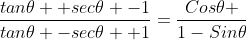 cos/(1-sin) 分子分母同乘以 (1+sin) cos(1+sin) / (1-sin²) = (1+sin) / cos = tan + sec 這種先看到答案 ... 39475494 發表於 2015-10-4 20:47