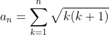 觀察數群(1),(1,1,2),(1,1,1,2,2,3),(1,1,1,1,2,2,2,3,3,4),...照此規律,若第n群內各個數的總和為,求=____